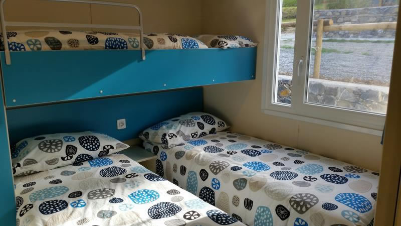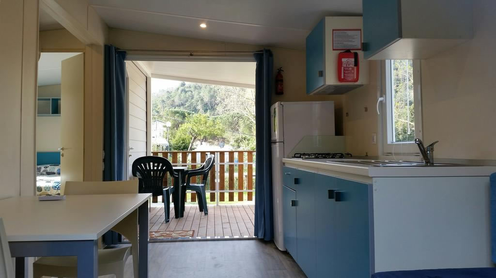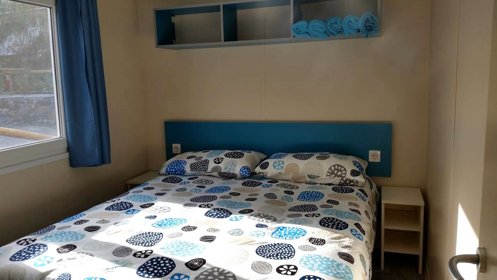 Behageligt møbleret, plassert i campingens grønne omgivelser, alle med en lejligheds komfort: dobbeltværelse, soveværelse med tre enkelt senge, stue med køkkenkrog og badeværelse (håndvask, brusebad og wc). De er udstyret med air condition, varmt vand, opvarmning, satellit fejrnsyn (Astra), sengelinned, køkkentøj, bestikk og alt det der er nødvendigt for at lave mad.